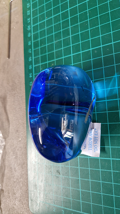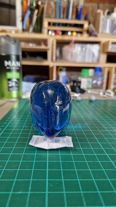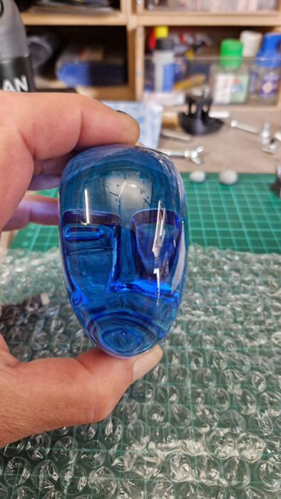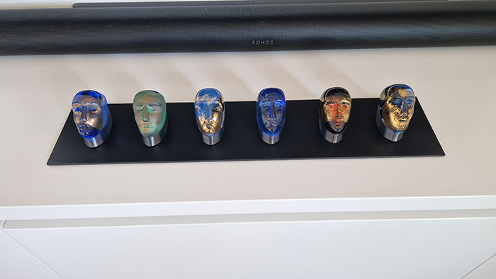 Particuliere klant heeft een collectie glazen hoofdjes die in een doos opgeborgen lagen. Door de vorm van de hoofdjes blijven ze niet rechtop staan op zichtzelf en zijn ze dus niet mooi toonbaar.