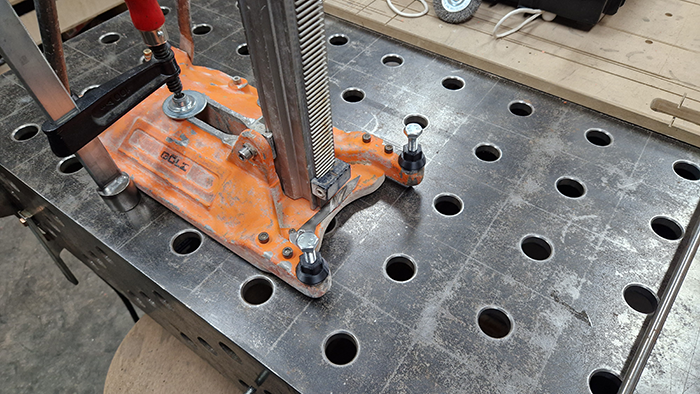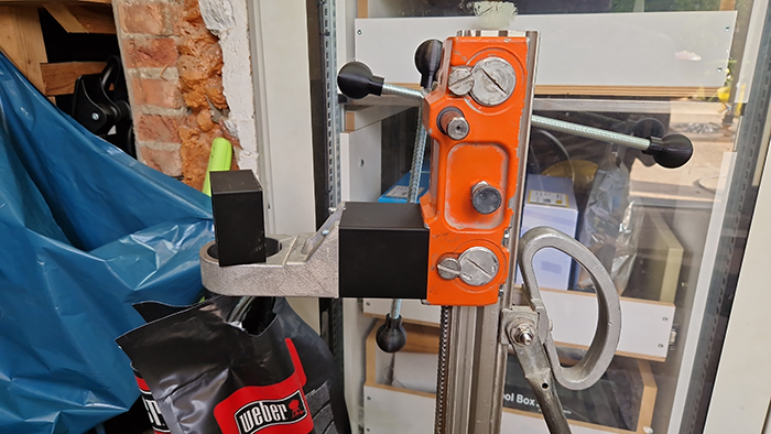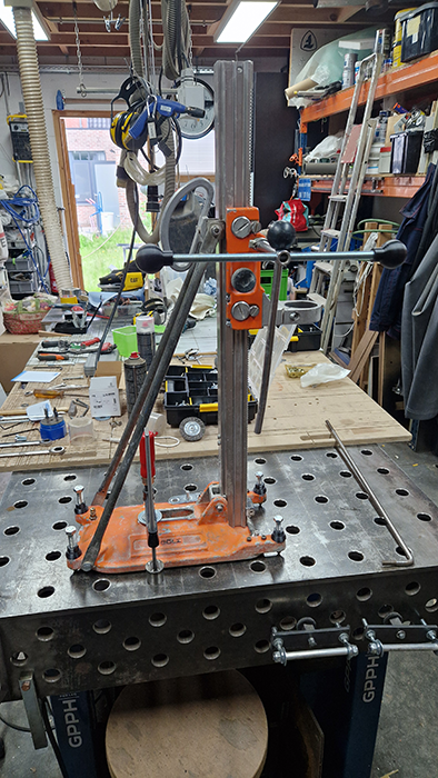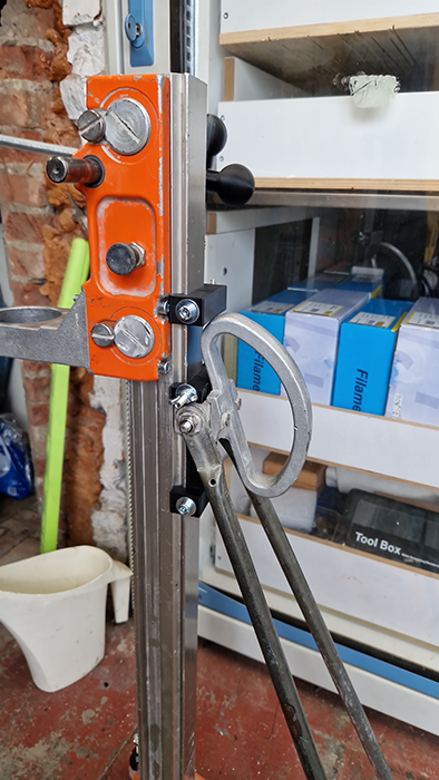 Professionele klant met een ouder model klokboor statief vroeg ons om enkele aanpassingen te doen om de functionaliteit te verbeteren: -insijpelen vuil/water in verstelvoetjes - 2e hendel - versteviging bevestiging in het midden