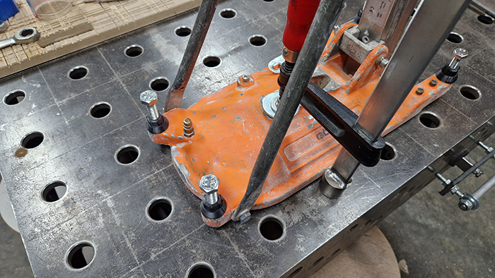 Alle wensen in kaart gebracht en oplossingen bedacht en ontworpen voor de klant. Daarna prototypes gemaakt en eindproduct gemaakt en gemonteerd: - extra hendel met ronde koppen (draad verbindingen) - voetjes met bredere kappen en moervorm bovenkant voor de verstelvoetjes - tussenblokken om grotere boordiameters te kunnen gebruiken - verstevigingsblokjes in het midden.