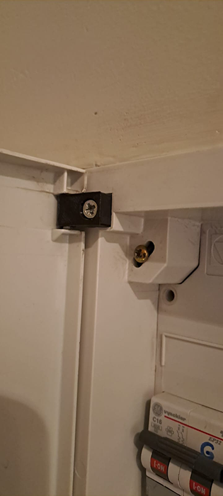 Particuliere klant waarvan de scharnieren van de inbouw elektriciteitskast kapot waren. Zou niet door de keuring geraken. Ouder model kast waarvan geen reserve onderdelen meer beschikbaar waren.
